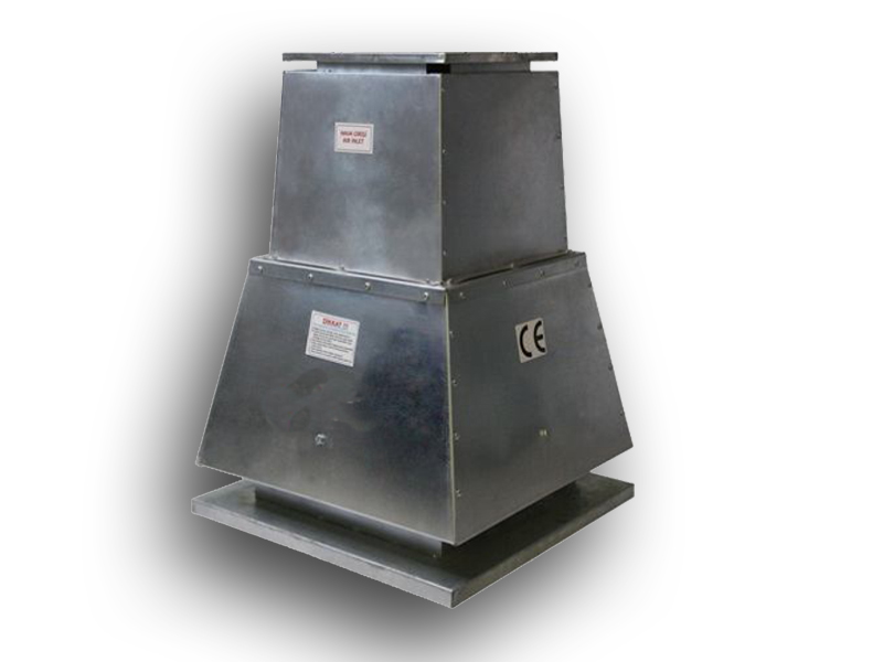 Çatı Tipi Aspiratör dış gövdesi tamamen alüminyum ve DKP sacdan imal edilmekte olup iç ve dış yüzeyi elektrostatik toz boya boyanmaktadır. Fanlar öne eğik sık kanatlı ve geriye eğik seyrek kanatlı olarak dizayn edilir.